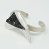 Sterling Silver Bracelet with a deltoid shape taken from my sculpture, framing a gorgeous piece of triangular black druzy.
