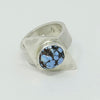 Sterling Silver Ring features an oblique shape from my sculptures set with a beautiful turquoise.