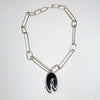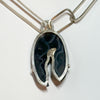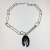 Sterling Silver Handmade Chain with custom handmade links of different sizes framing an amazing Crown of Silver Psilomelane Pendant.