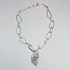 Sterling Silver Handmade Chain with custom handmade links of different sizes framing a Silver Clump with an amazing Uvarovite Garnet from Russia.